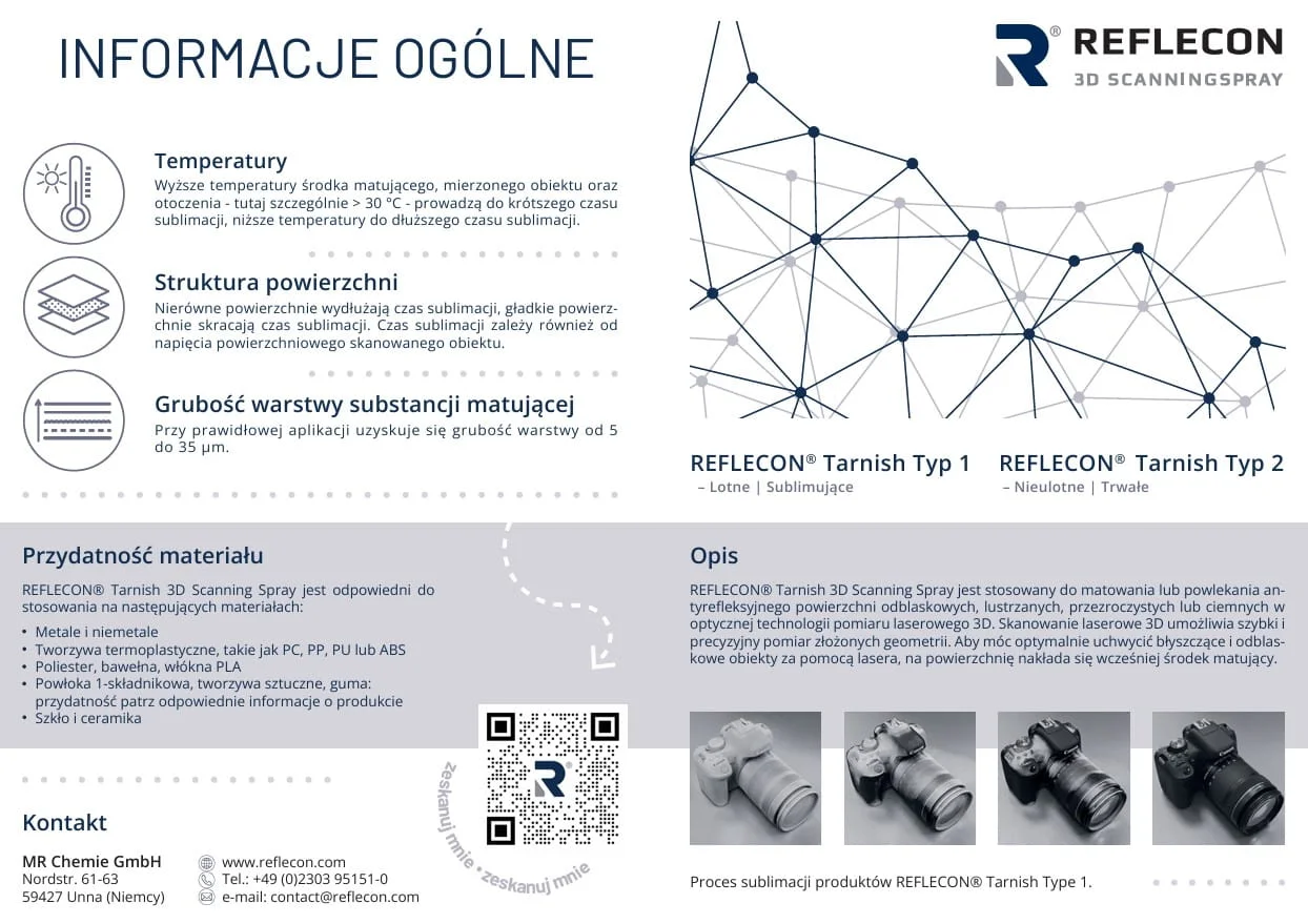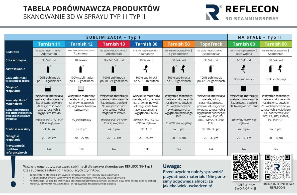- Zastosowanie: spray do skanowania 3D i śledzenia ruchu