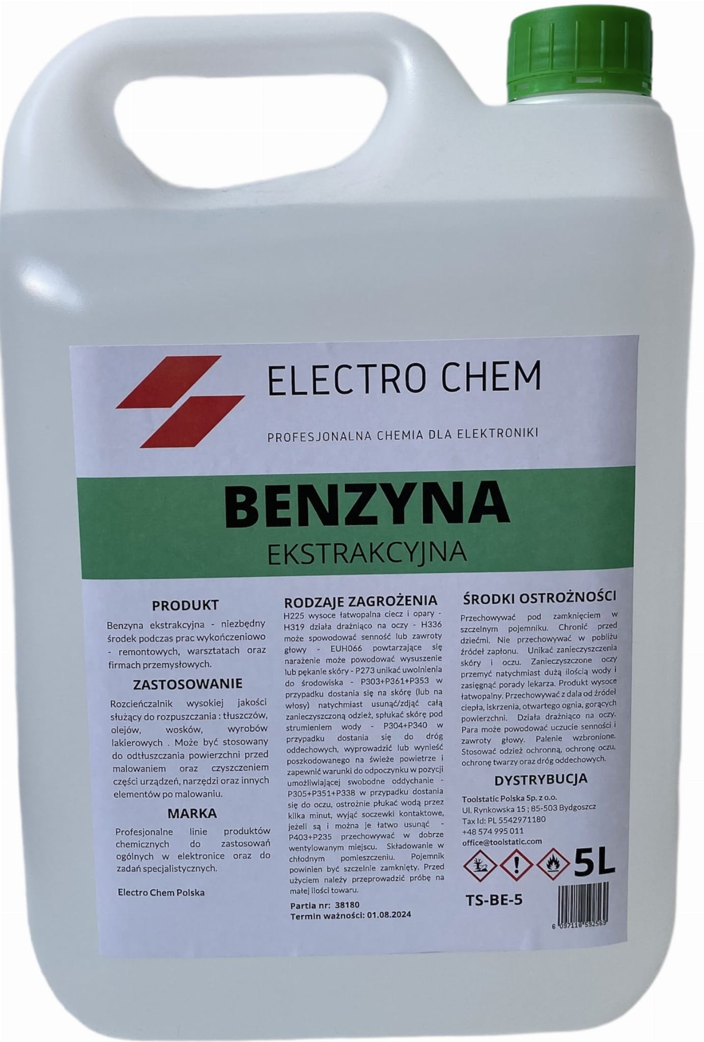 Benzyna ekstrakcyjna to świetny środek stosowany do czyszczenia, odtłuszczania części metalowych i mechanicznych. Czyści tłuste plamy, wosk, olej, klej oraz naklejki i etykiet. Jest to środek konieczny w każdym warsztacie np. samochodowym, ale i w różnych zakładach specjalistycznych. Również produkt  przeznaczony do rozcieńczania wyrobów lakierowych oraz do czyszczenia powierzchni przed malowaniem lub narzędzi po malowaniu.